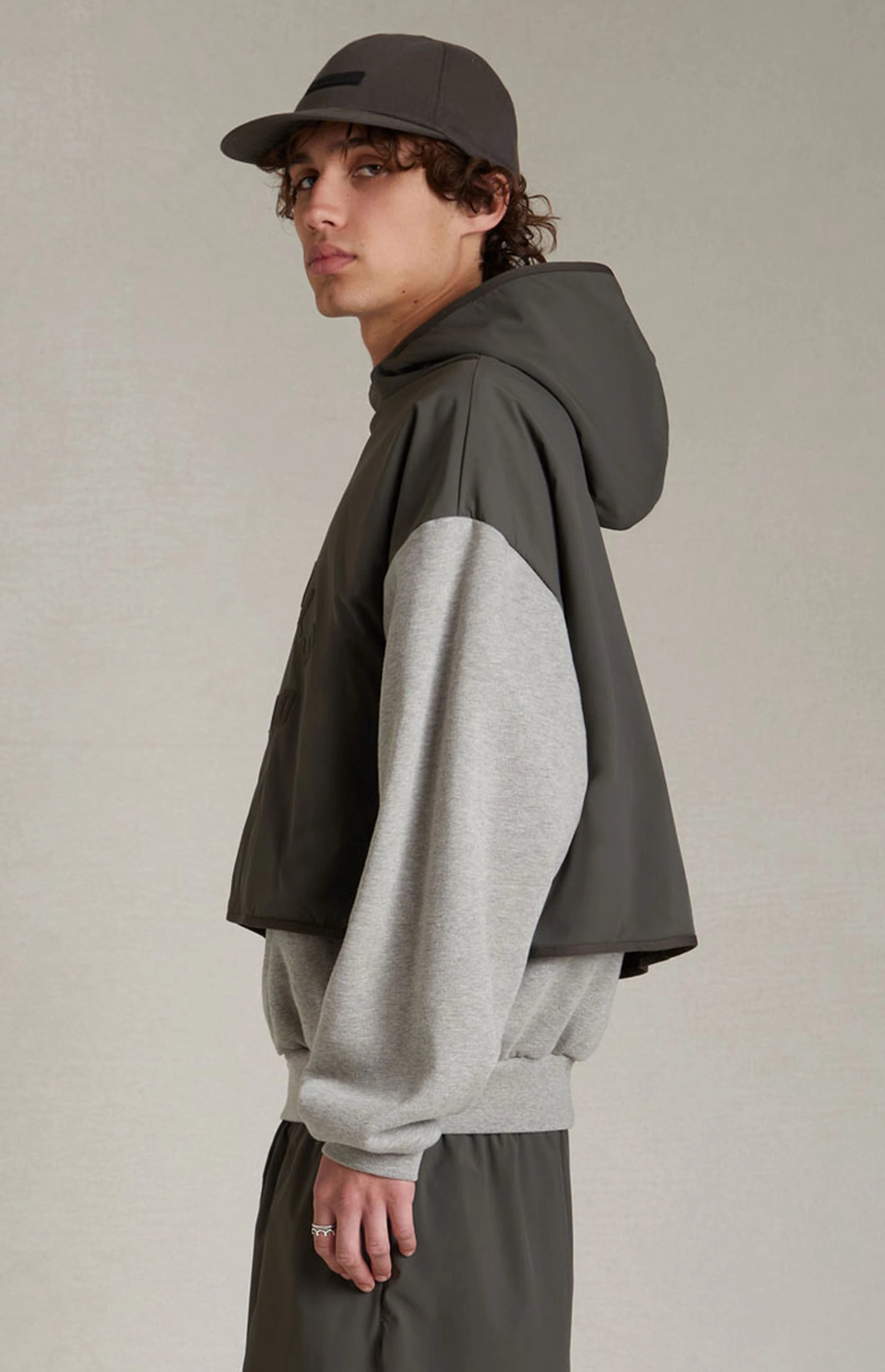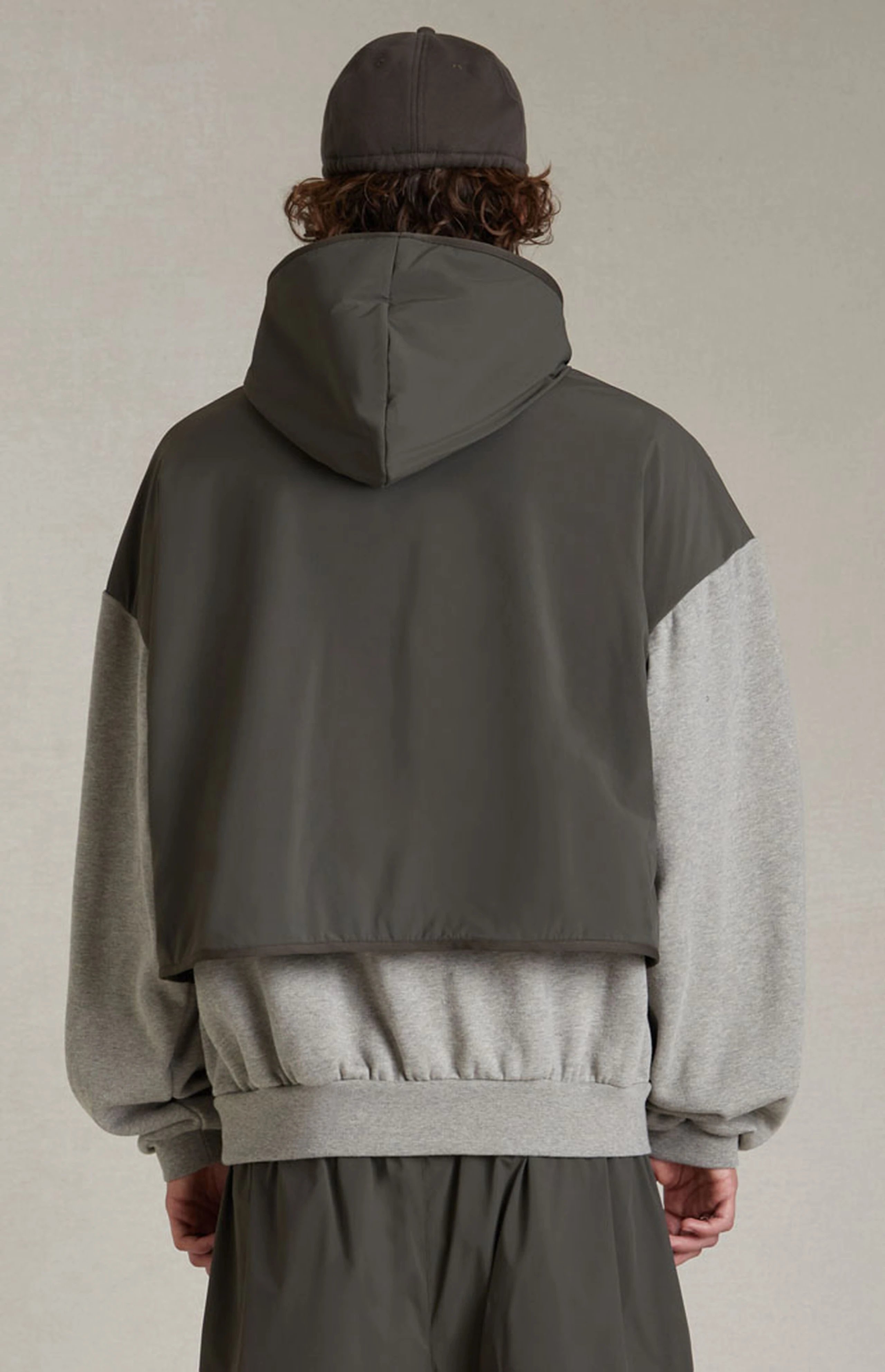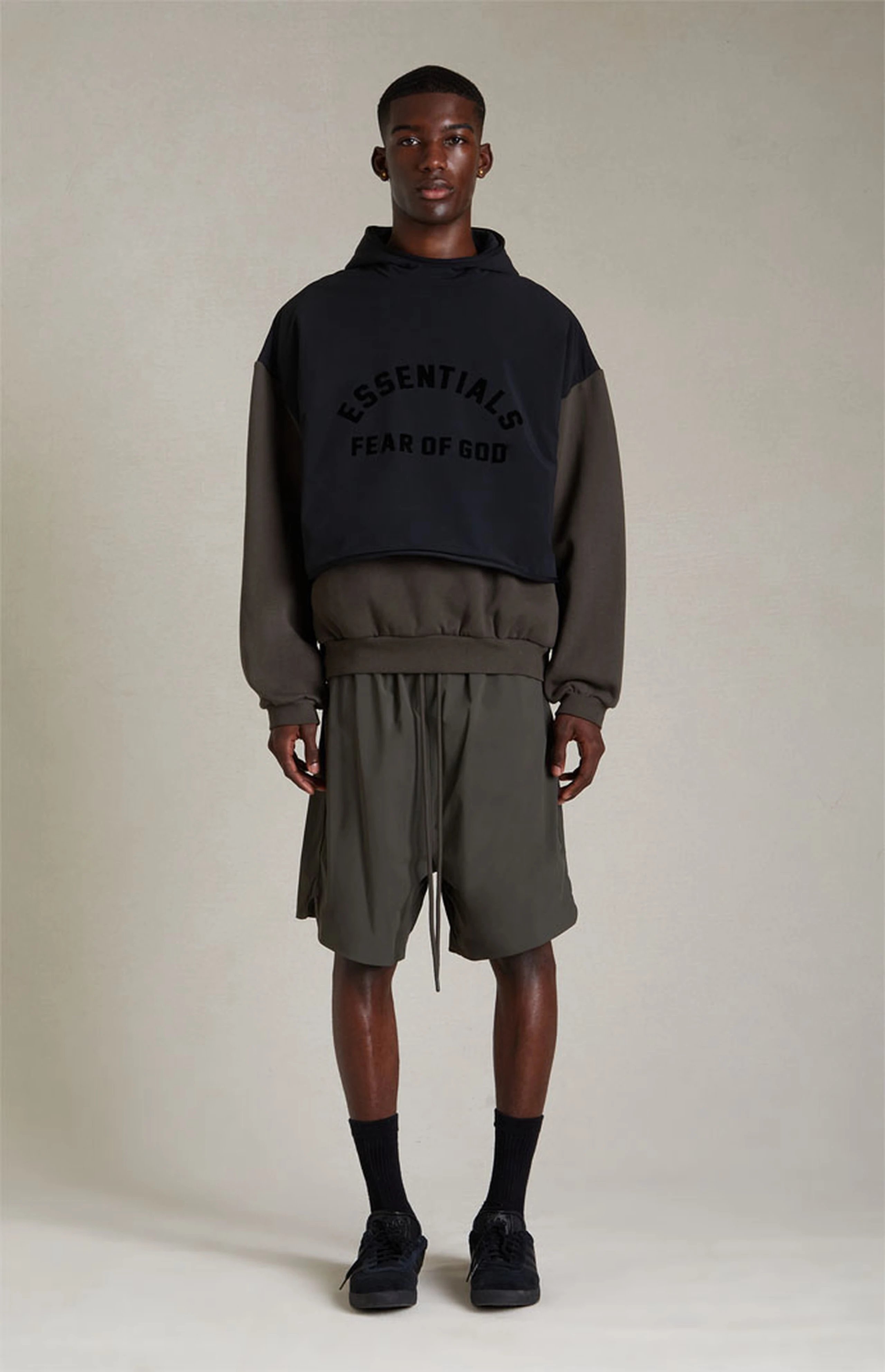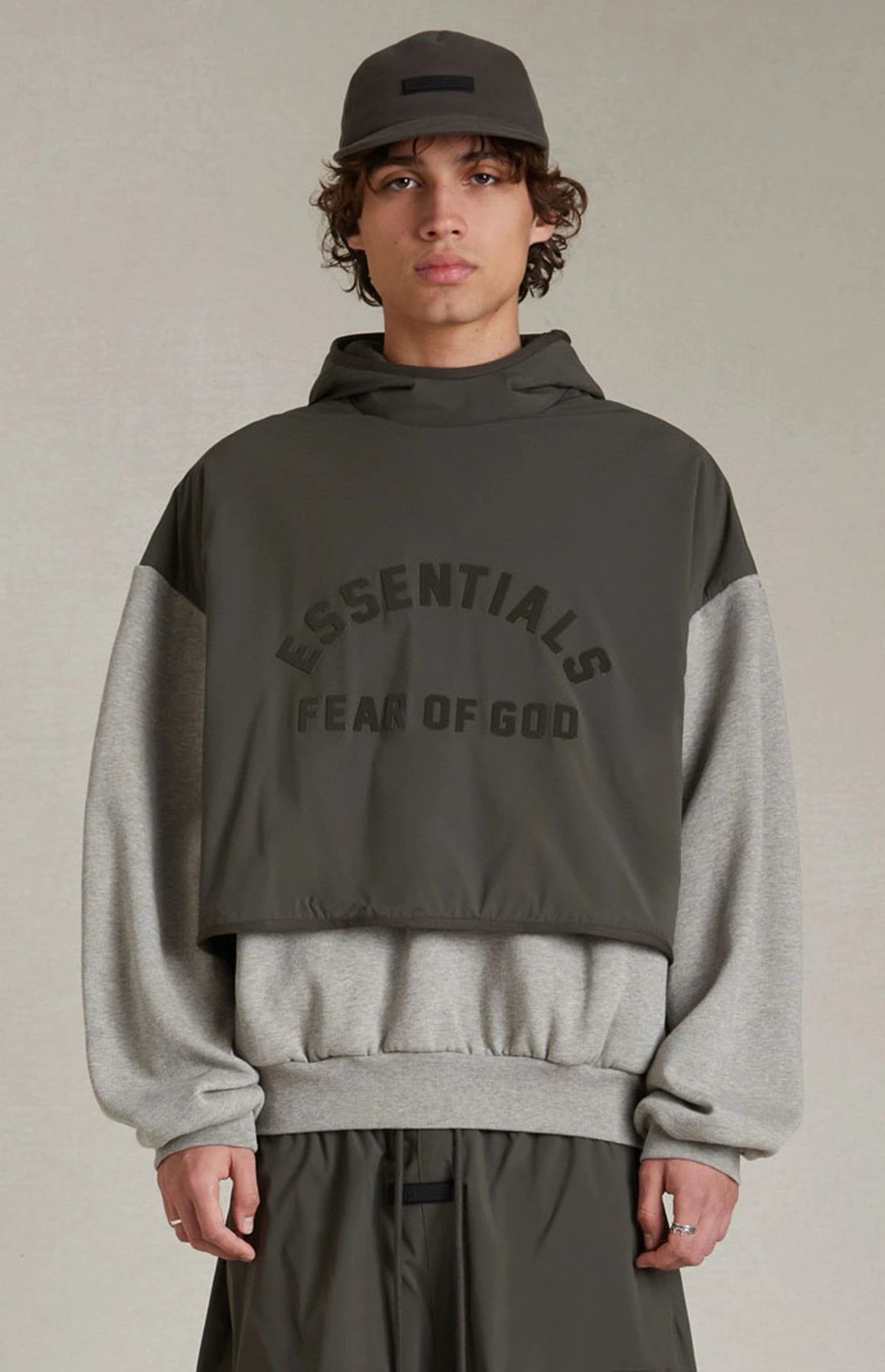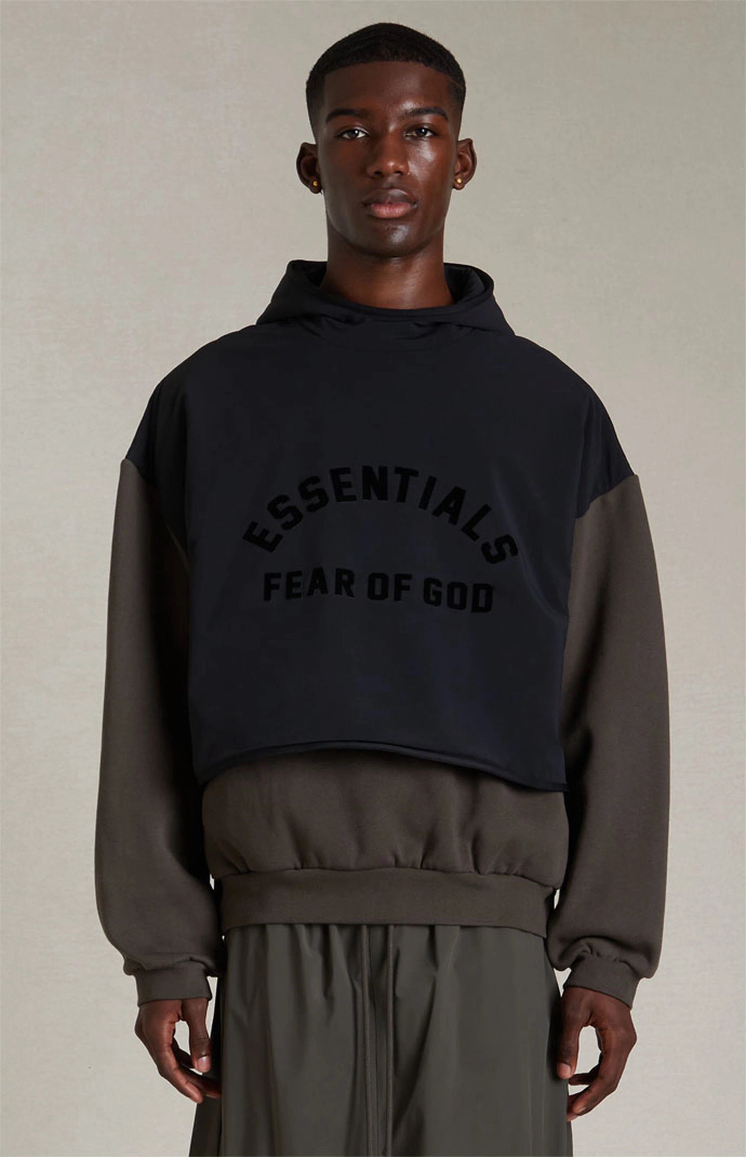 FEAR OF GOD ESSENTIALS DOUBLE-STITCHED CONTRASTING TWO-PIECE FOG HOODED SWEATSHIRT
