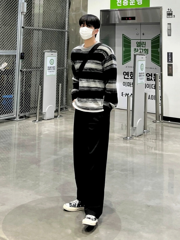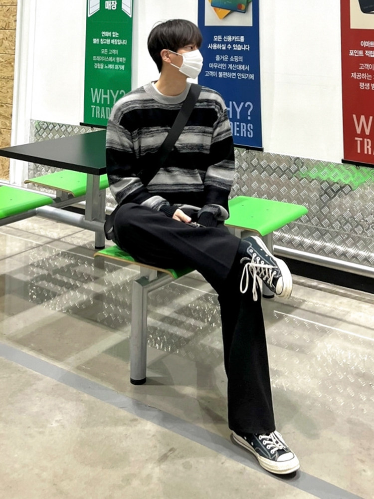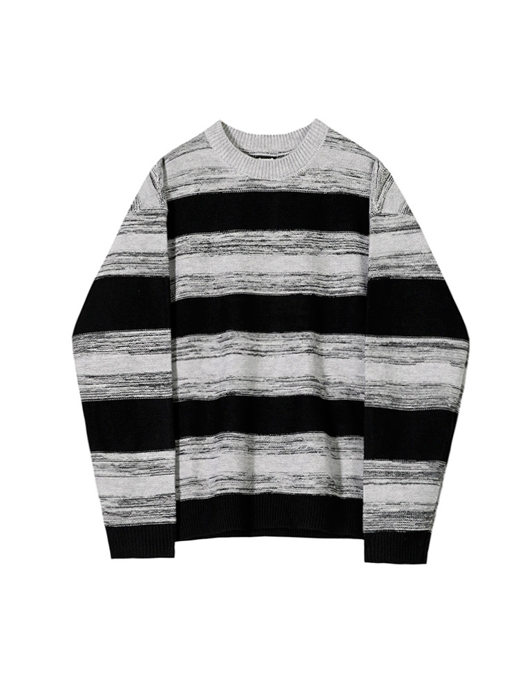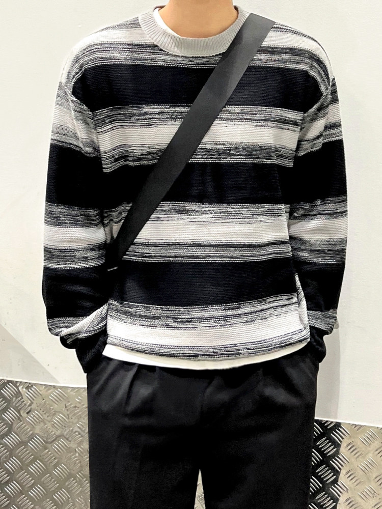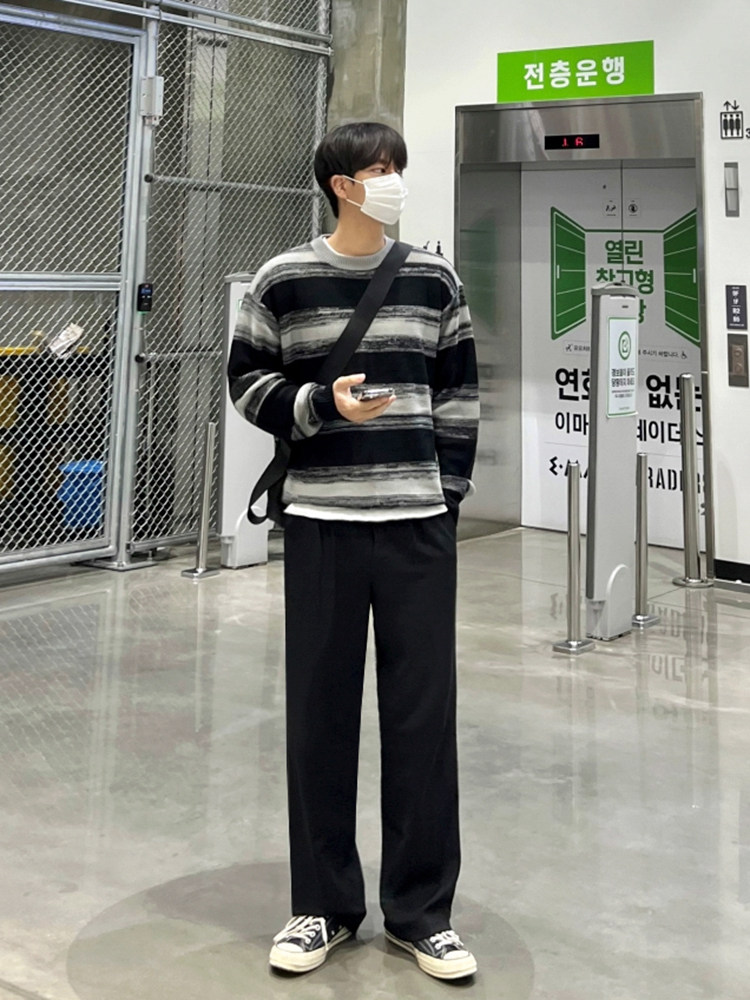 MRCYC Contrasting Stripe Crew Neck Sweater Men’s Autumn Winter Korean Trend Casual Knitwear Loose Thread Jacket