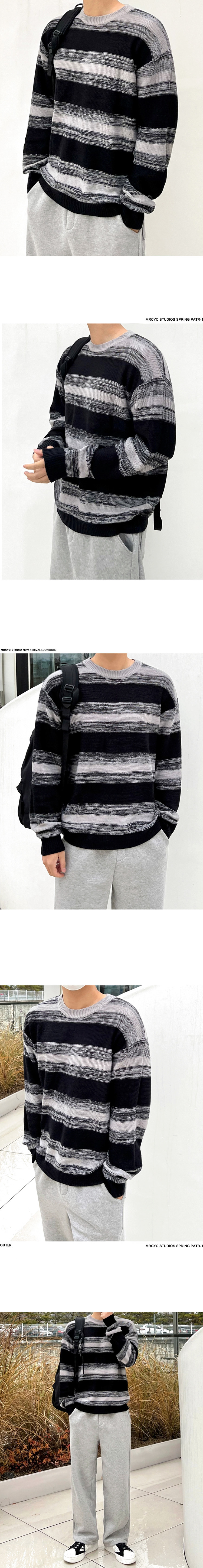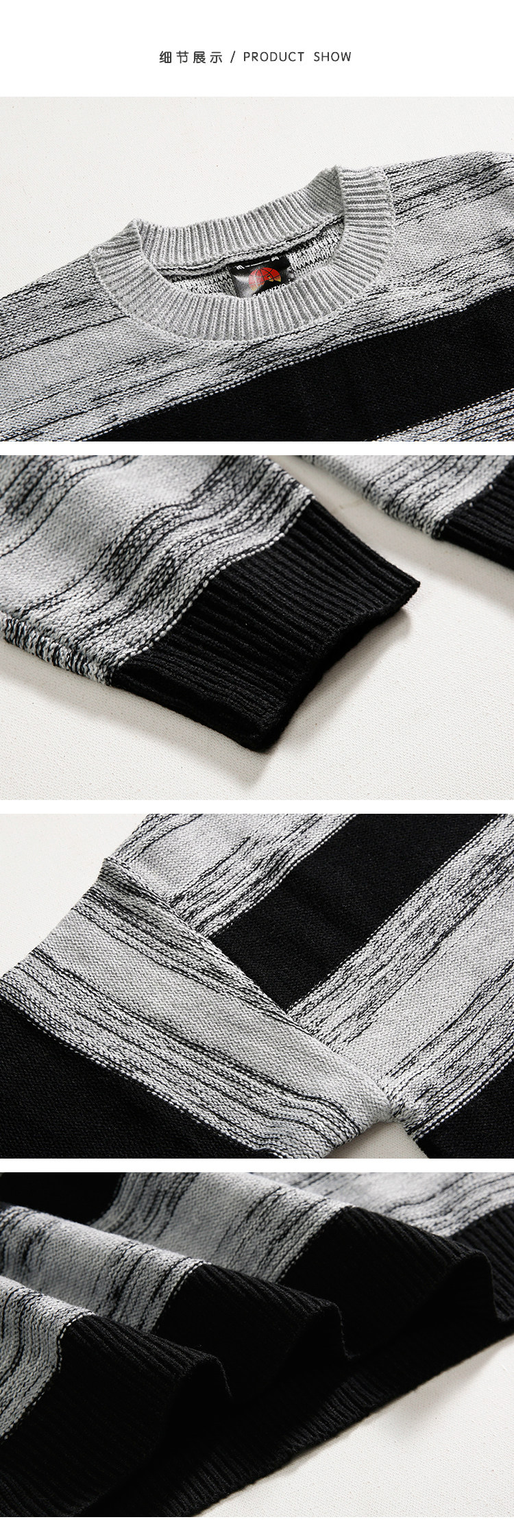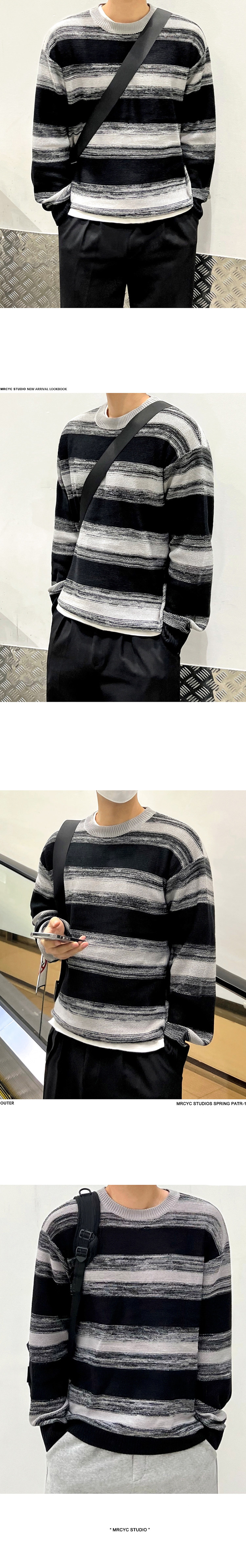 MRCYC Contrasting Stripe Crew Neck Sweater Men’s Autumn Winter Korean Trend Casual Knitwear Loose Thread Jacket