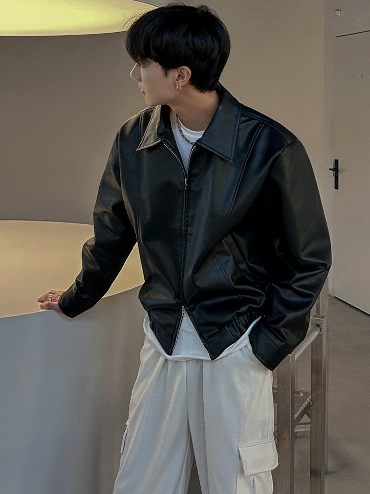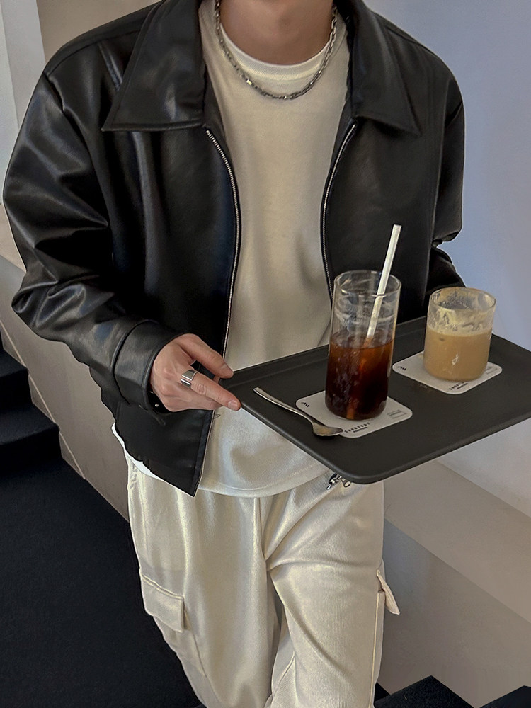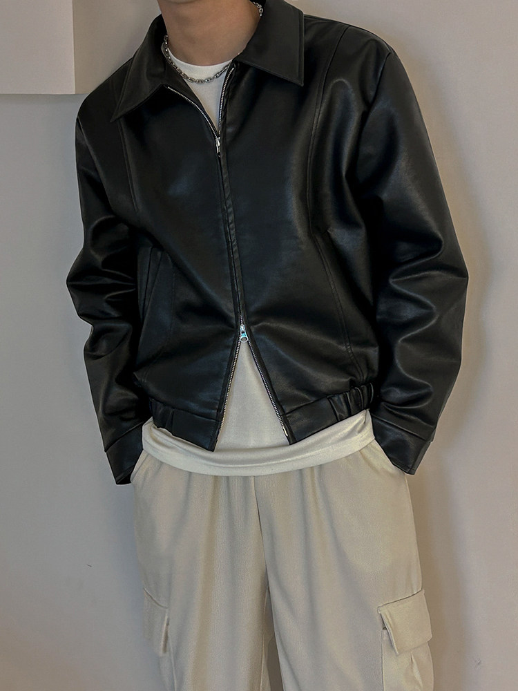 MRCYC Handsome Short Leather Jacket Men’s Spring New Lapel Top Korean Loose Premium Leather Jacket