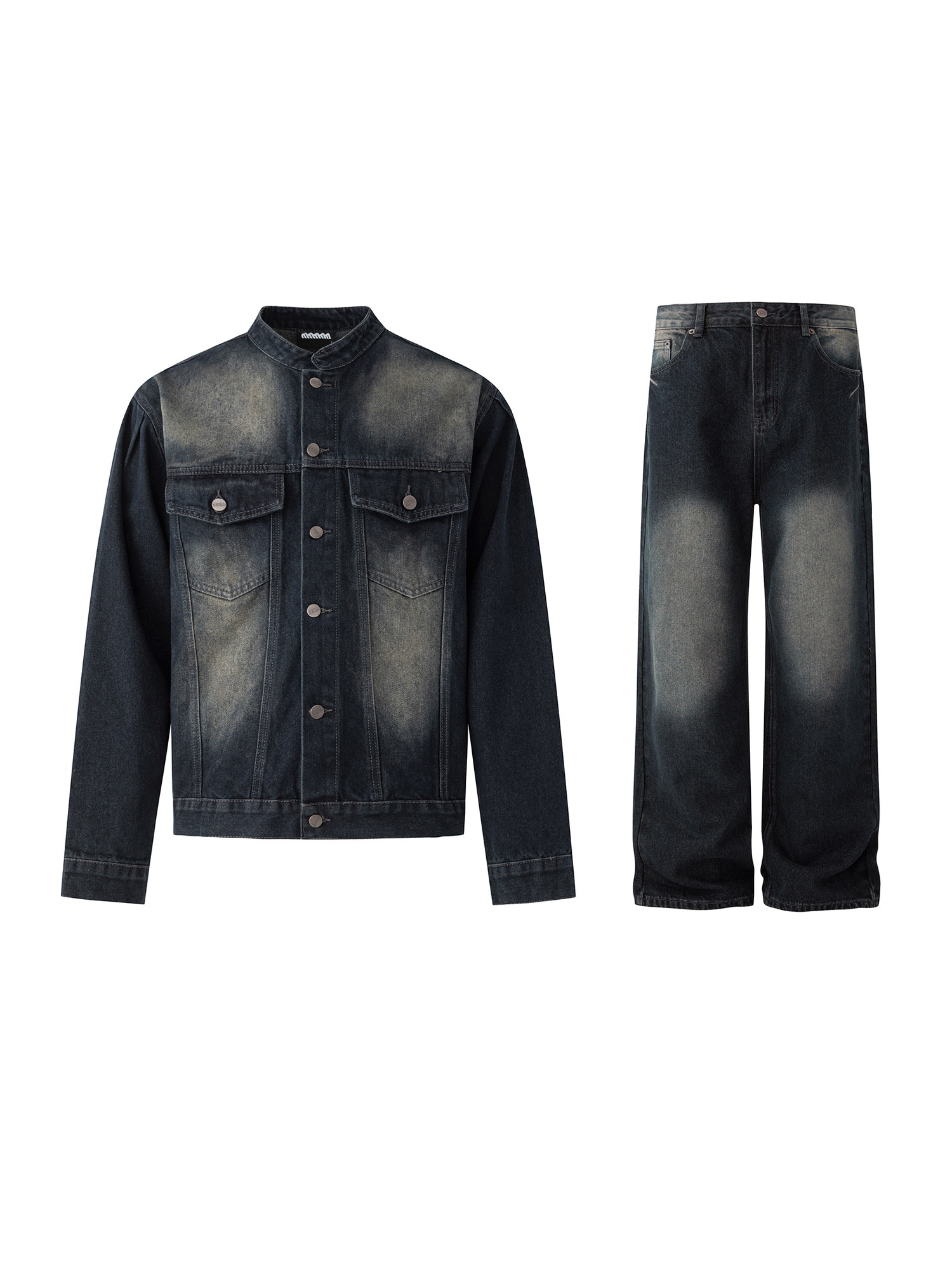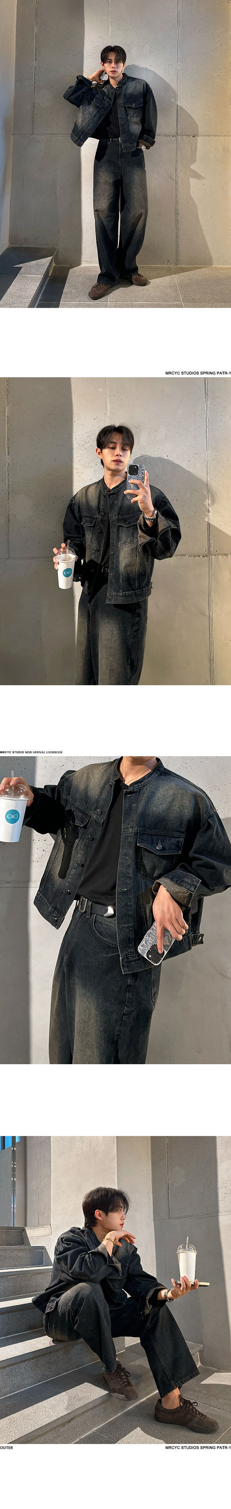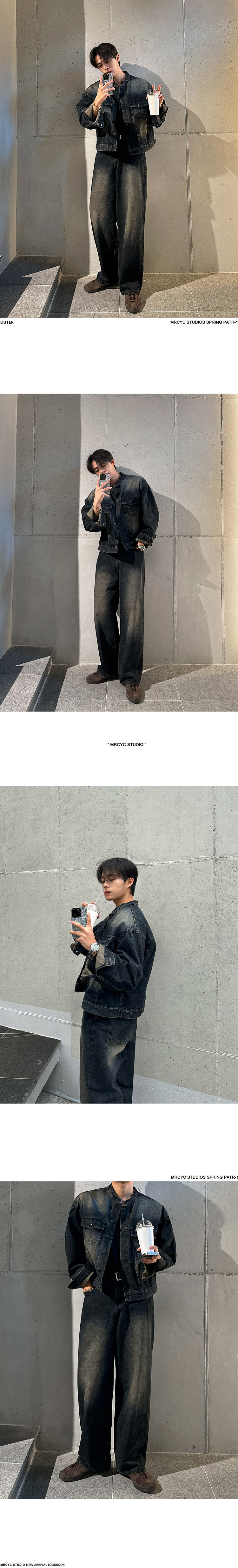 MRCYC Handsome Vintage Stand Collar Denim Jacket Men’s Spring and Autumn Loose Wide Leg Jeans Korean Fashion Suit