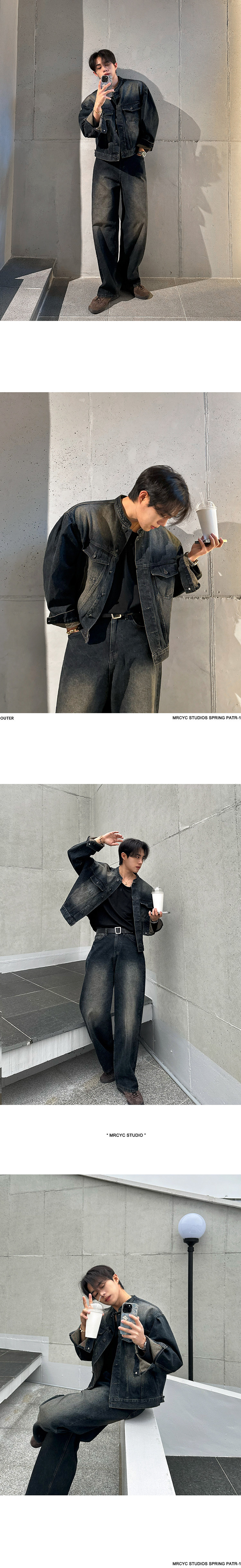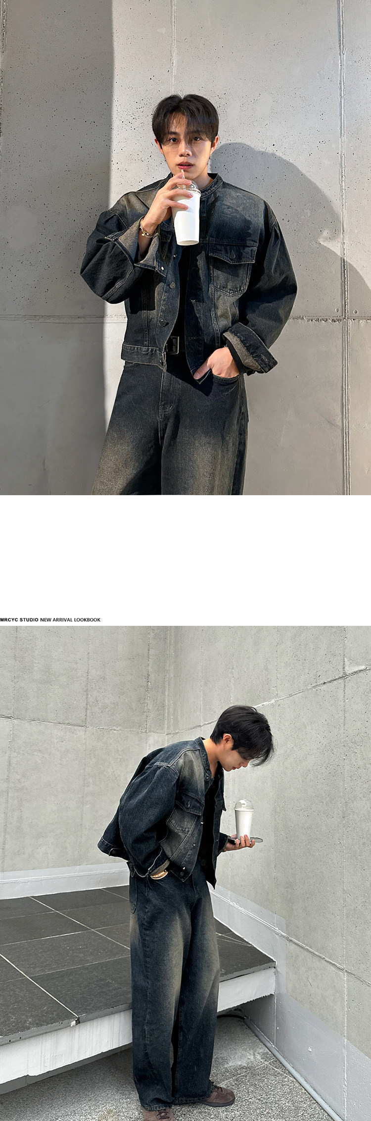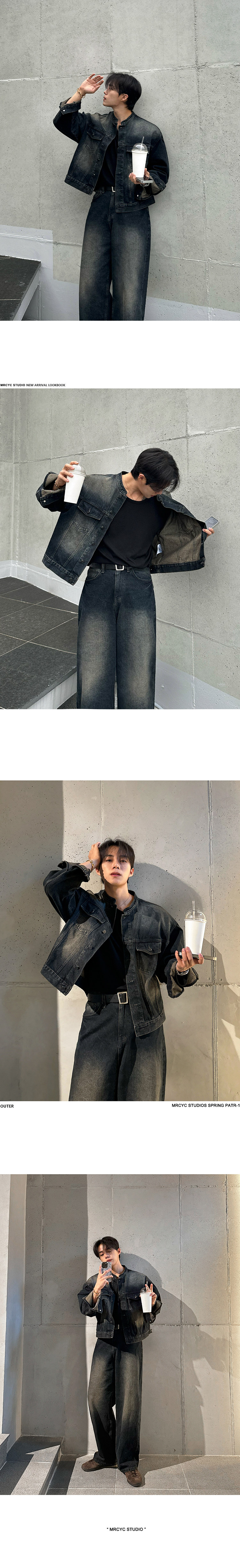 MRCYC Handsome Vintage Stand Collar Denim Jacket Men’s Spring and Autumn Loose Wide Leg Jeans Korean Fashion Suit