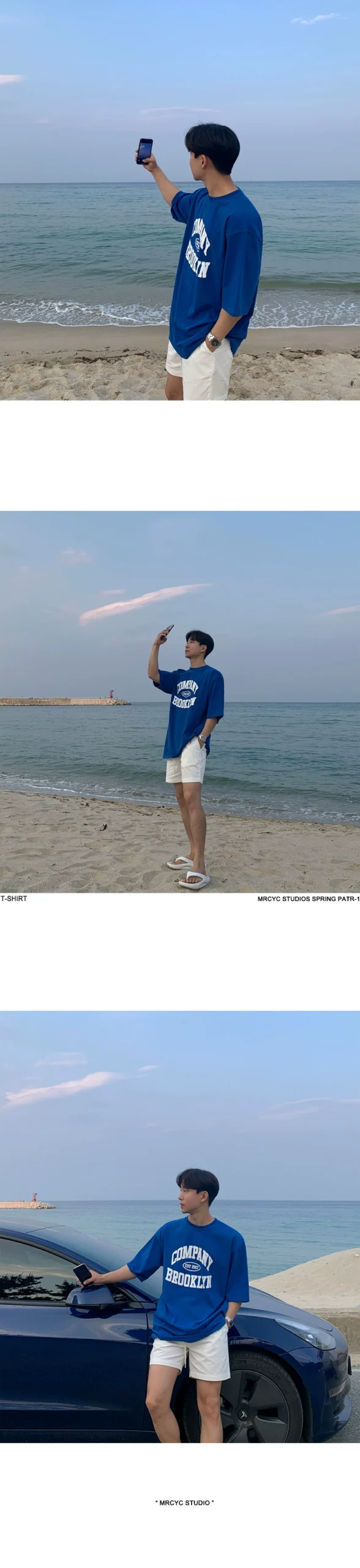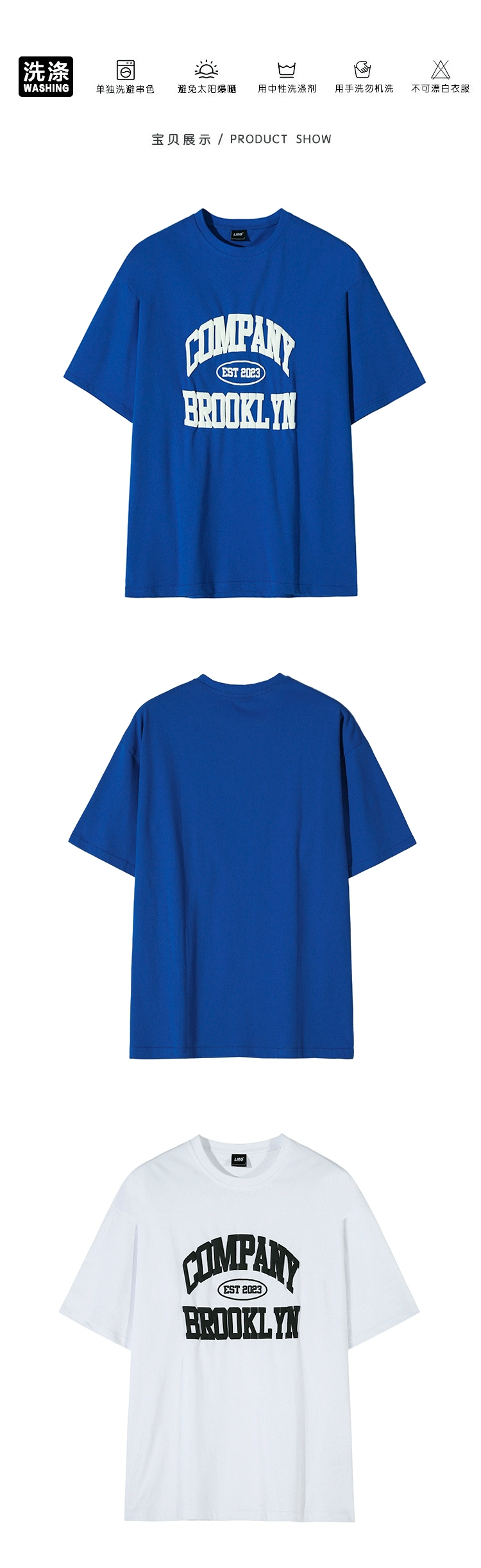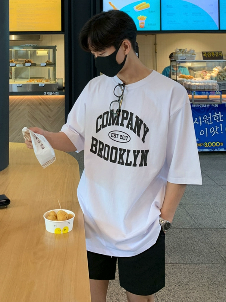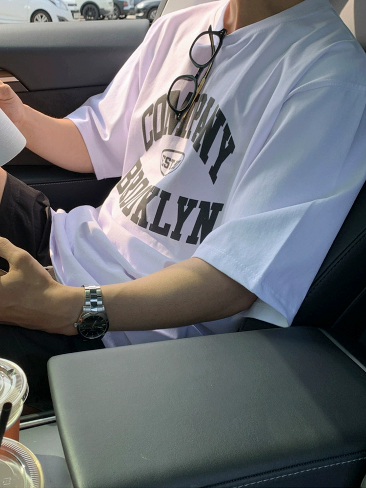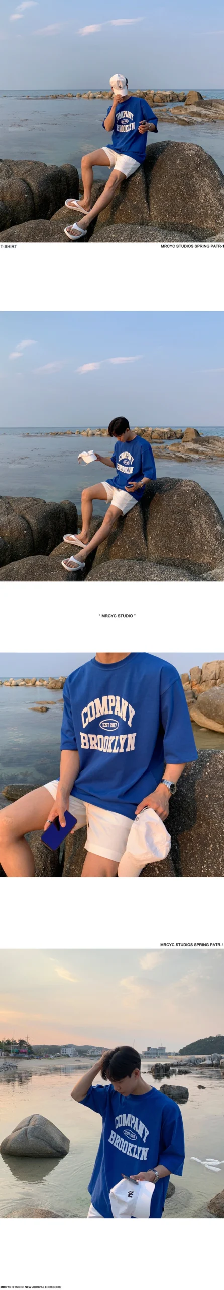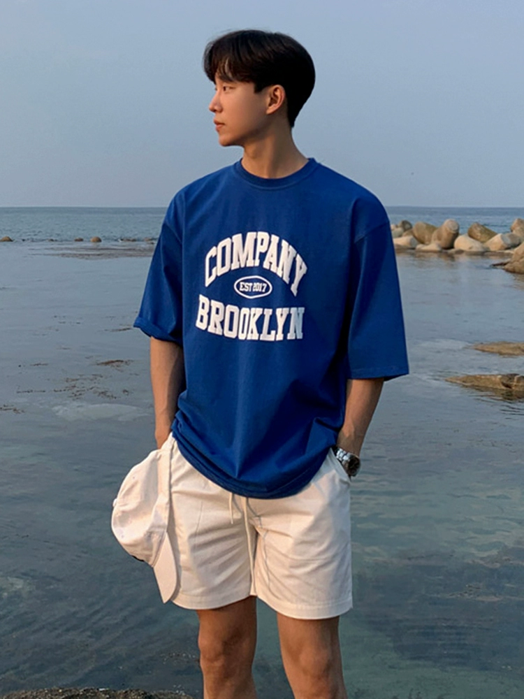MRCYC Klein Blue Short Sleeve T-Shirt Men’s Summer Korean Trend Alphabet Foam Print Cotton Half-sleeved T-shirt