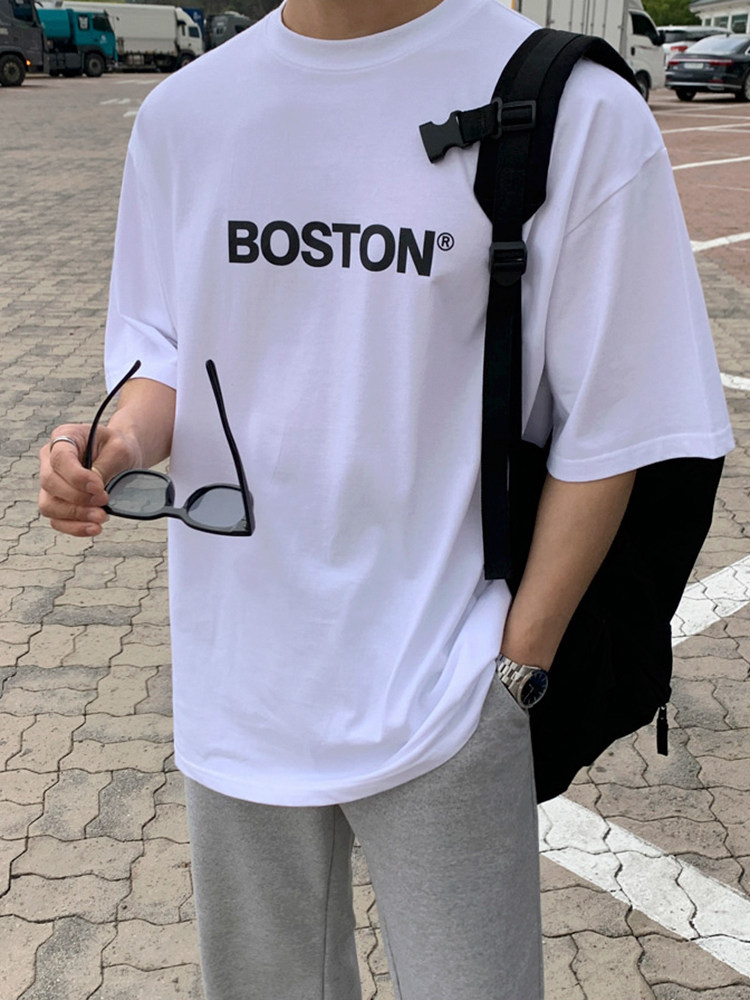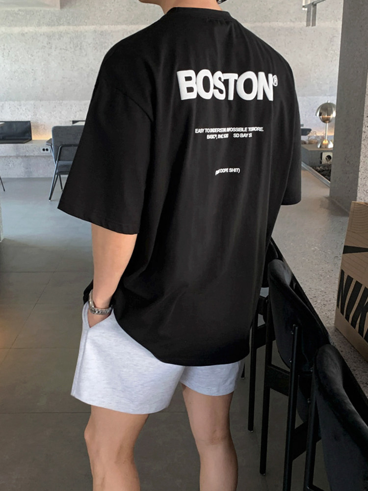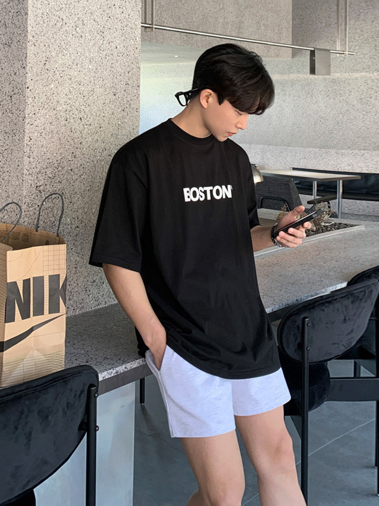 MRCYC Monogram Print Cotton Short Sleeve T-Shirt Men’s Summer Loose Crew Neck Short T Korean Trend Half Sleeve Top