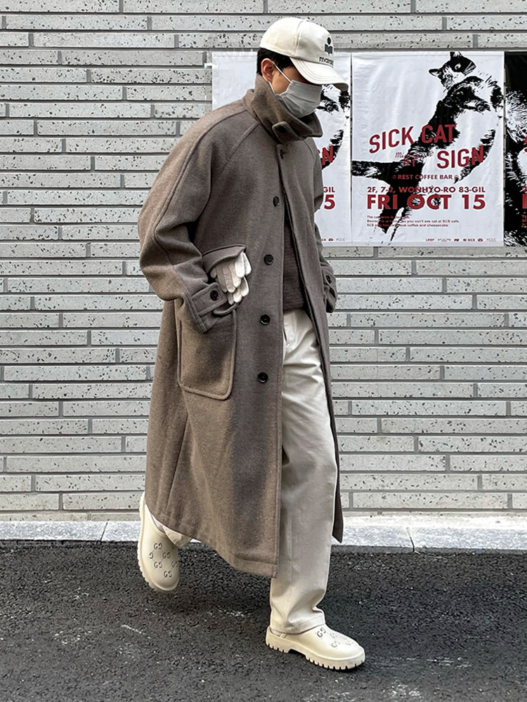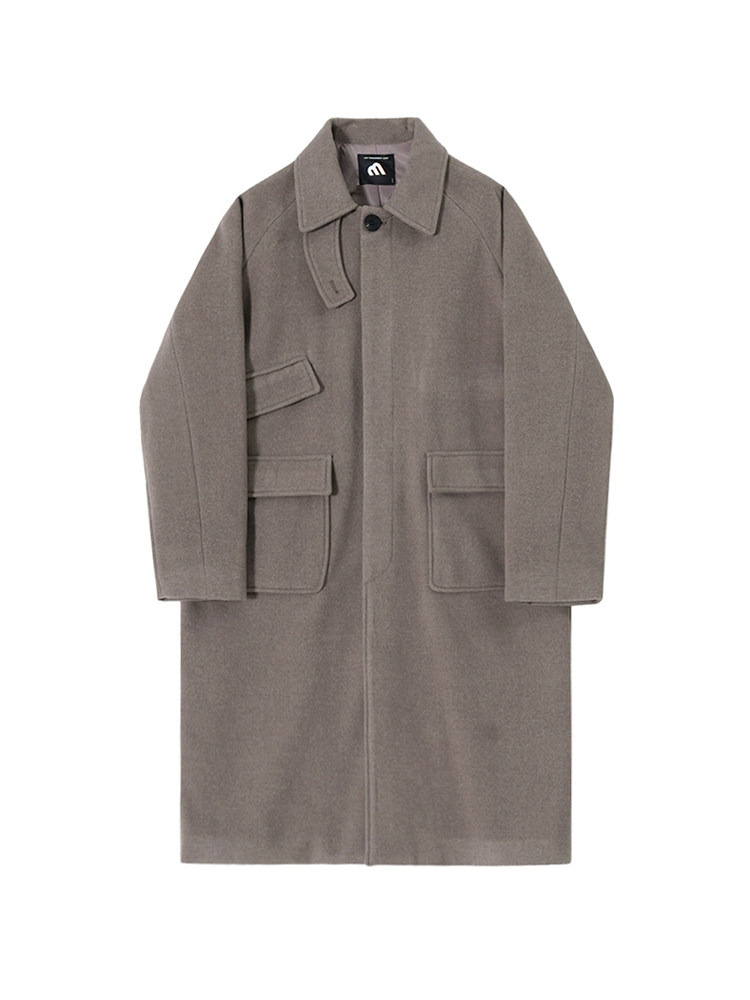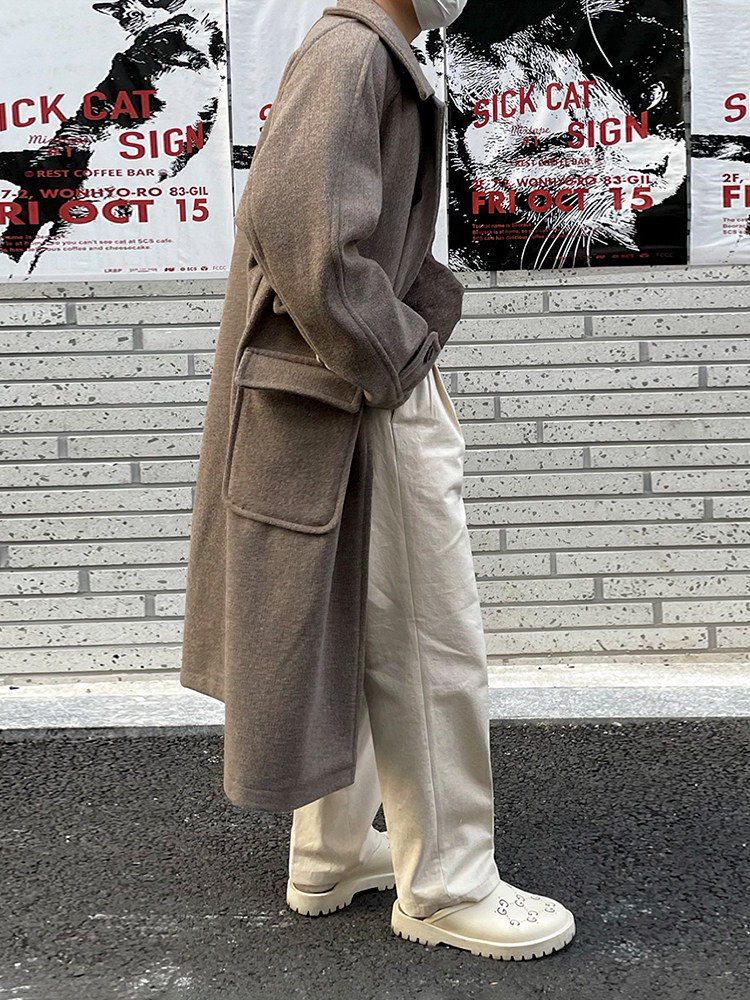MRCYC premium lapel H-shaped woolen coat men’s winter thickened midi length jacket Korean loose woolen trench coat