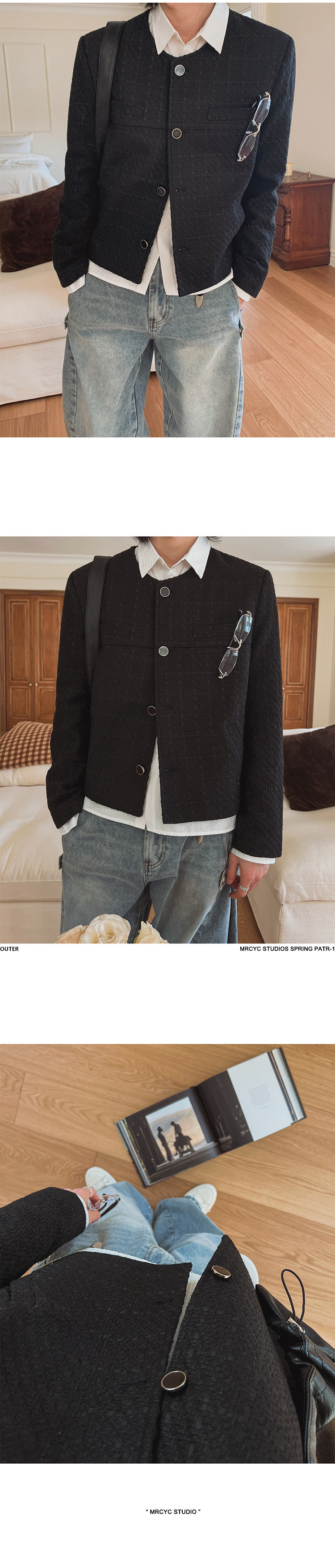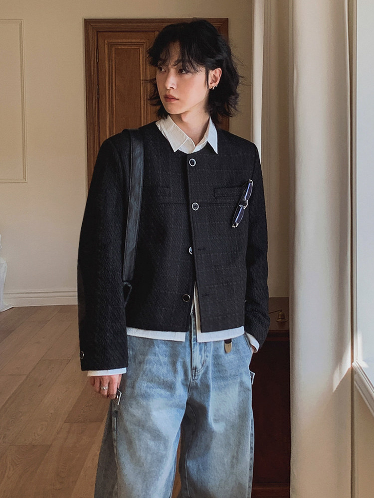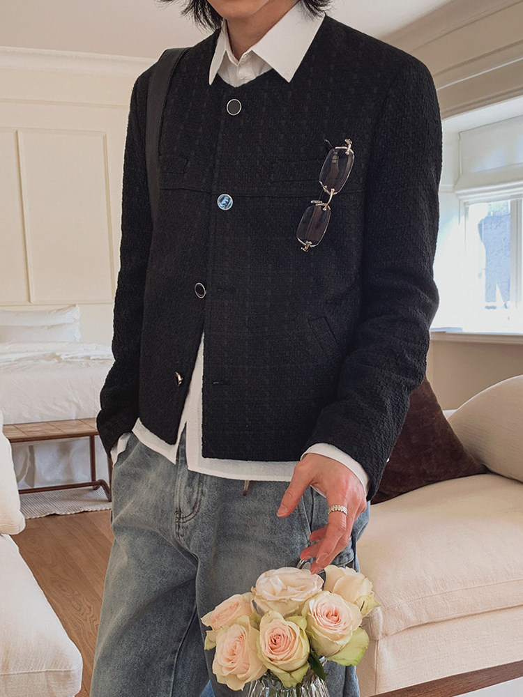 MRCYC small fragrance short jacket men’s autumn loose crew neck jacket Korean commuter style old money style outfit
