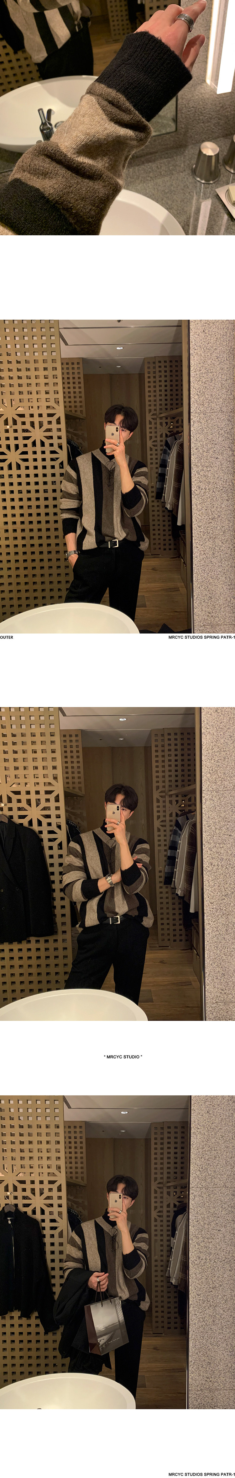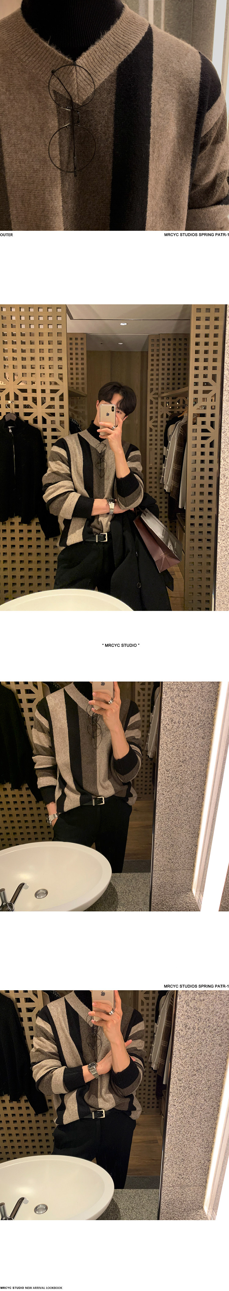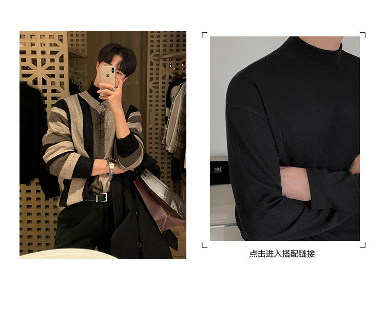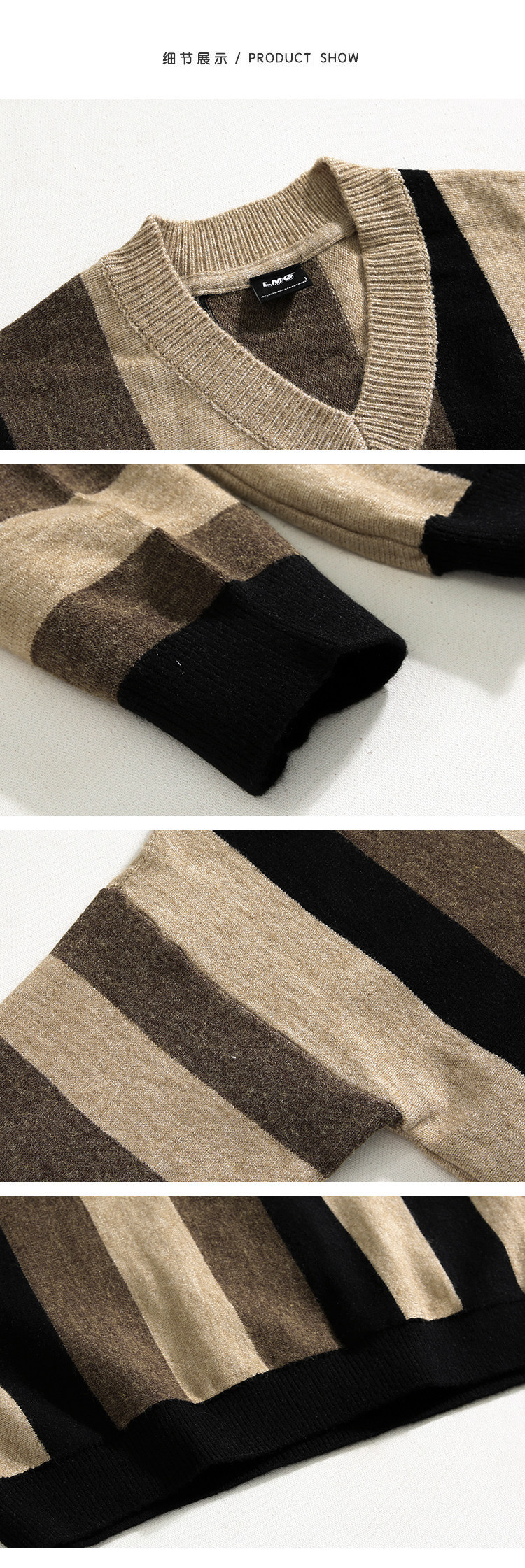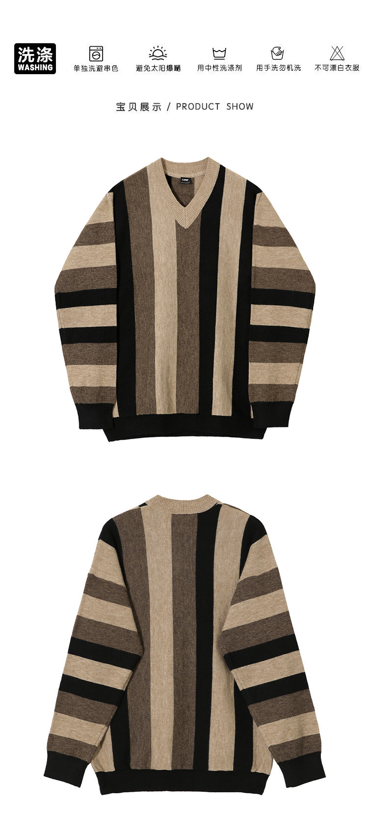 MRCYC Striped V-Neck Knit Sweater Top Men’s Autumn Winter Korean Loose Contrast Thickened Pullover Long Sleeve Sweater