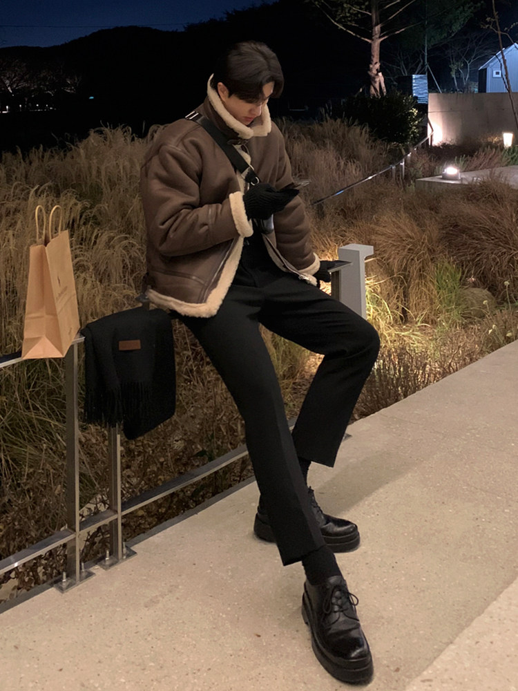 MRCYC suede stand up collar cotton jacket men’s winter loose warm cotton clothes Korean trend lambswool jacket