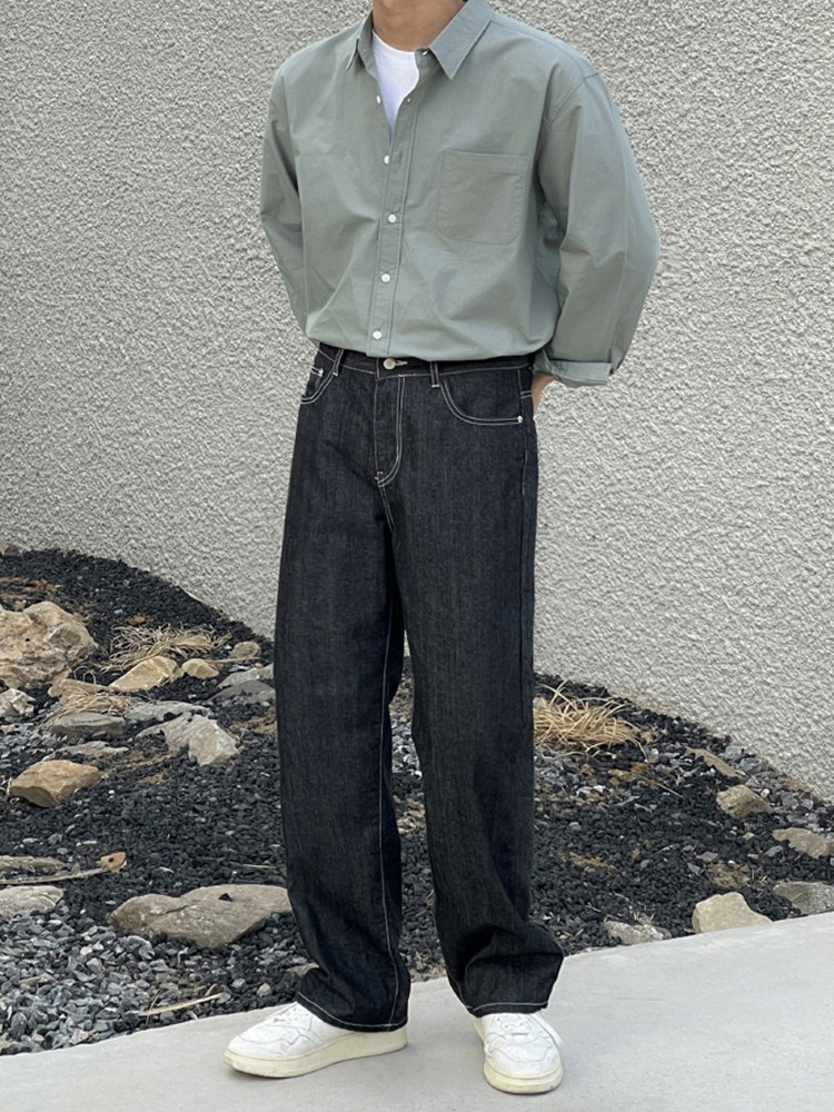 MRCYC Handsome Straight Jeans Men’s Spring Loose Cleanfit Long Pants Korean Trend Wide Leg Pants